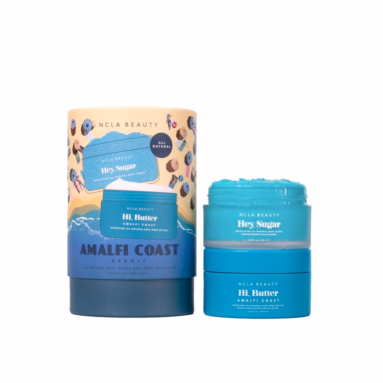 Sugar Scrub: Sucrose (White Sugar), Glycerin, Purified Water, Sodium Cocoyl Isethothionate (Hostapon SCI), Propylene Glycol, Disodium Laureth Sulfosuccinate, Stearic Acid, Salt (Sodium Chloride), Butyrospermum Parkii (Organic Shea) Butter, Theobroma Cacao Seed (Cocoa Butter), Mangifera Indica Seed (Mango) Butter, Organic Hempseed Oil, Sorbitan Caprylate, Mica, Fragrance Oil Body Butter: Deionized Water (Aqua), Organic Shea Butter (Butyrospermum Parkii), Cocoa (Theobroma Cacao) Butter, Mango (Mangifera Indica) Butter, Cetearyl Alcohol, Ceteareth-20, Stearic Acid, Organic Sunflower (Heleanthus Annuus) Seed Oil, Grape (Vitis Vinifera) Seed Oil, Sweet Almond Oil (Prunus Amygdalus Dulcis), Organic Hemp (Cannabis Sativa) Seed Oil, Aloe (Aloe Barbadensis) Leaf Extract, Cucumber (Cucumis Sativus) Fruit Extract, Orange (Citrus Aurantium Dulcis) Fruit Extract (Vitamin C), Lemon (Citrus Limon) Peel Fruit Extract (Vitamin C), Benzoic Acid, Propanediol, Sorbitan Caprylate, Fragrance Oil