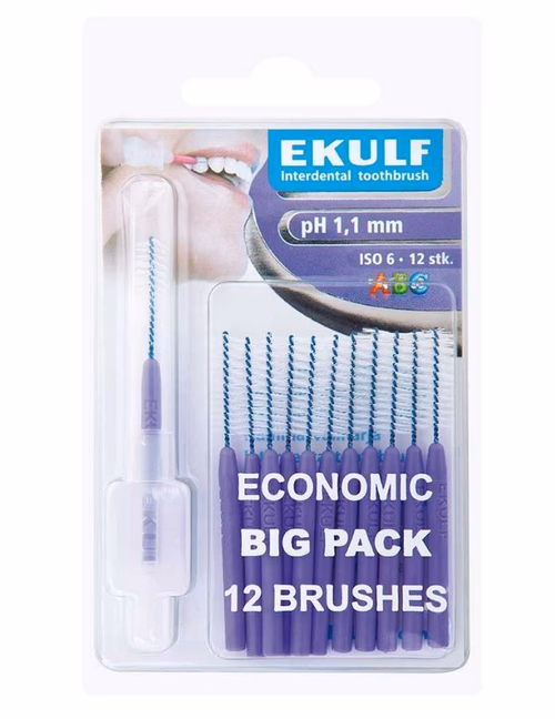 EKULF mellomromsbørste 1,1 mm (lilla) fjerner effektivt plakk og matrester. ISO-størrelse 6 for større mellomrom. Skånsom og enkel i bruk.