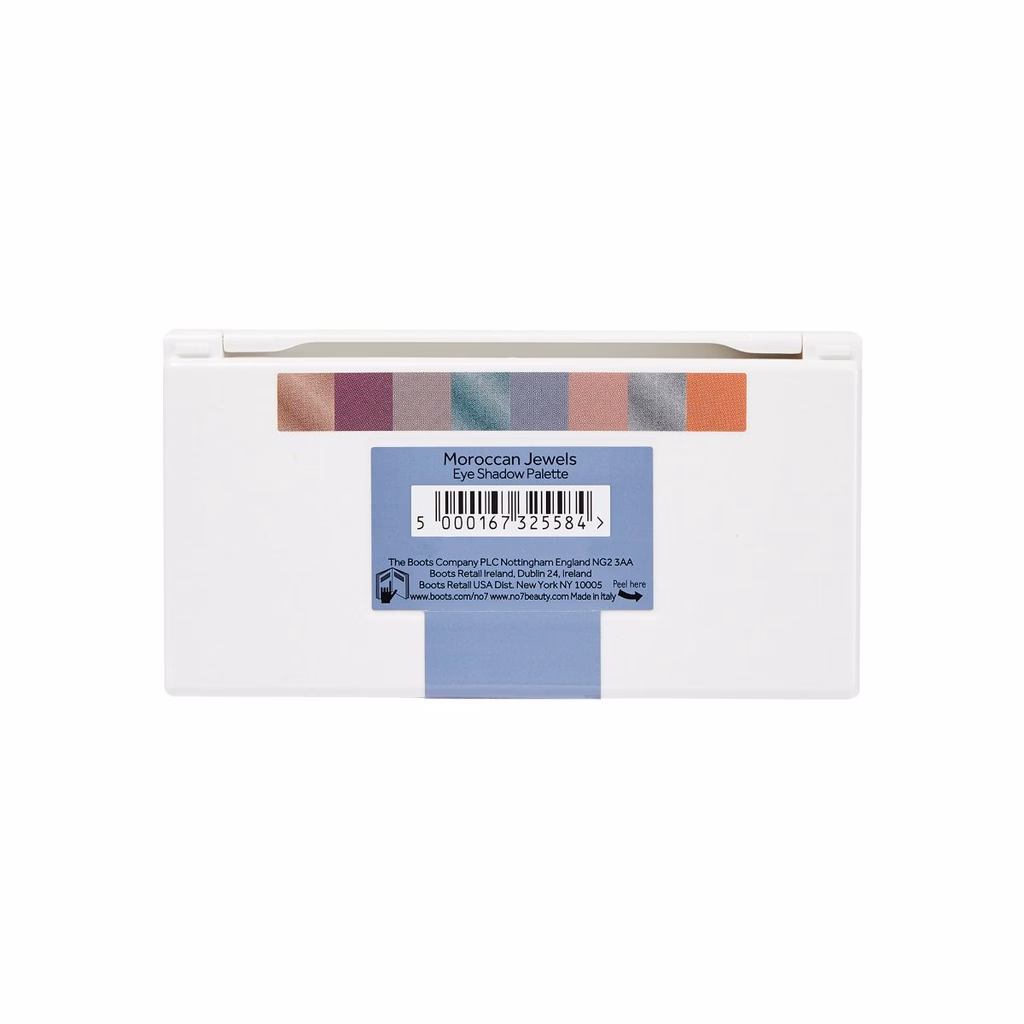 Utforsk No7 Moroccan Jewels øyenskyggepalett med 8 matte og metalliske nyanser. Høypigmenterte farger som blander seg lett for en silkemyk finish.