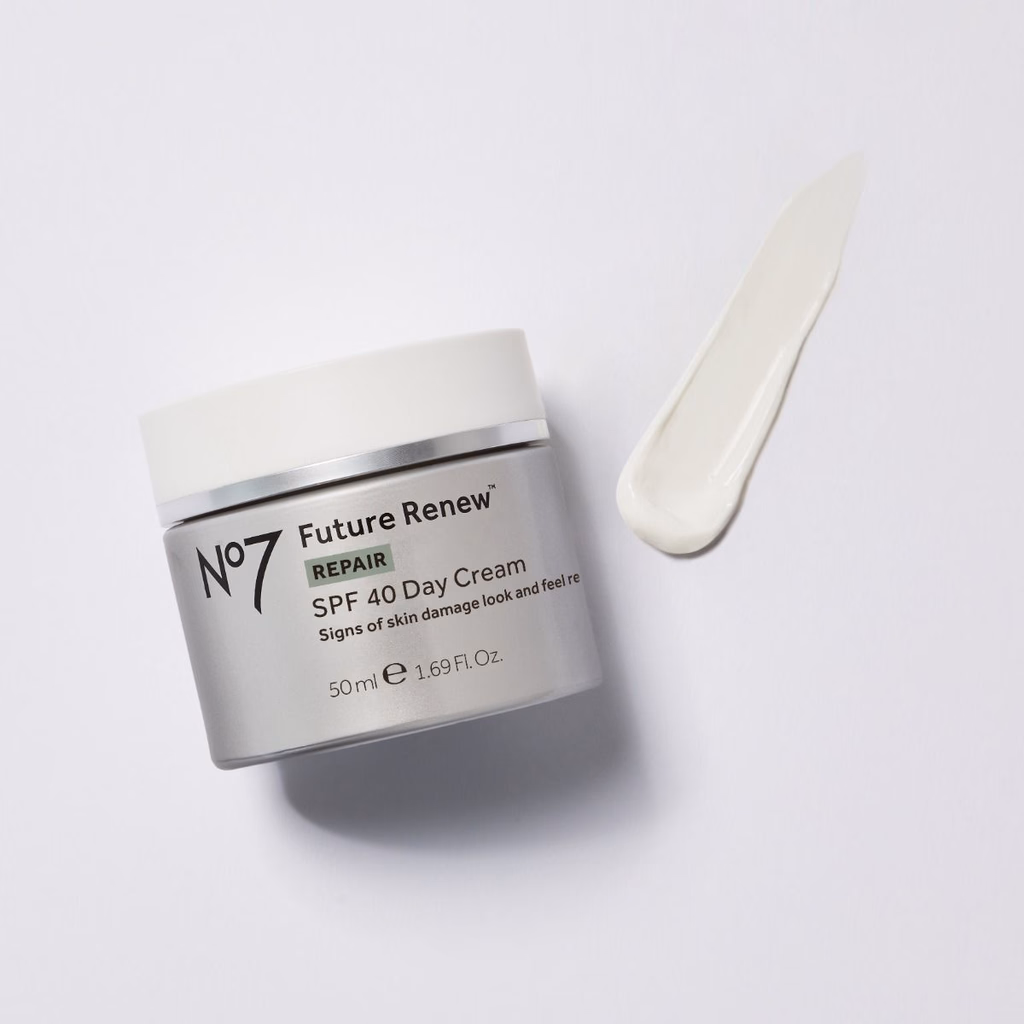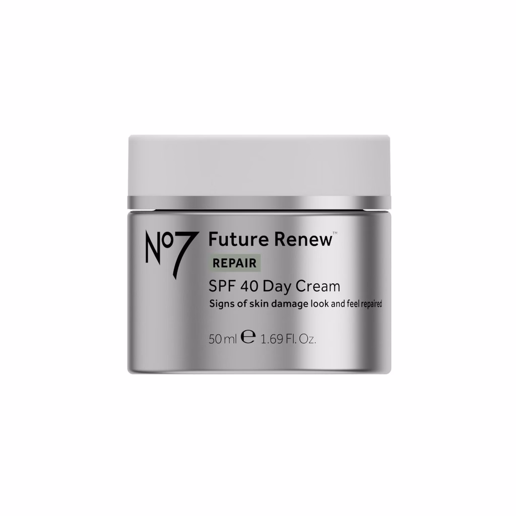 Reparer og beskytt huden med No7 Future Renew Day Cream SPF40. Drevet av PEPTICOLOGY™ peptidinnovasjon for bedre elastisitet og 72t fukt.