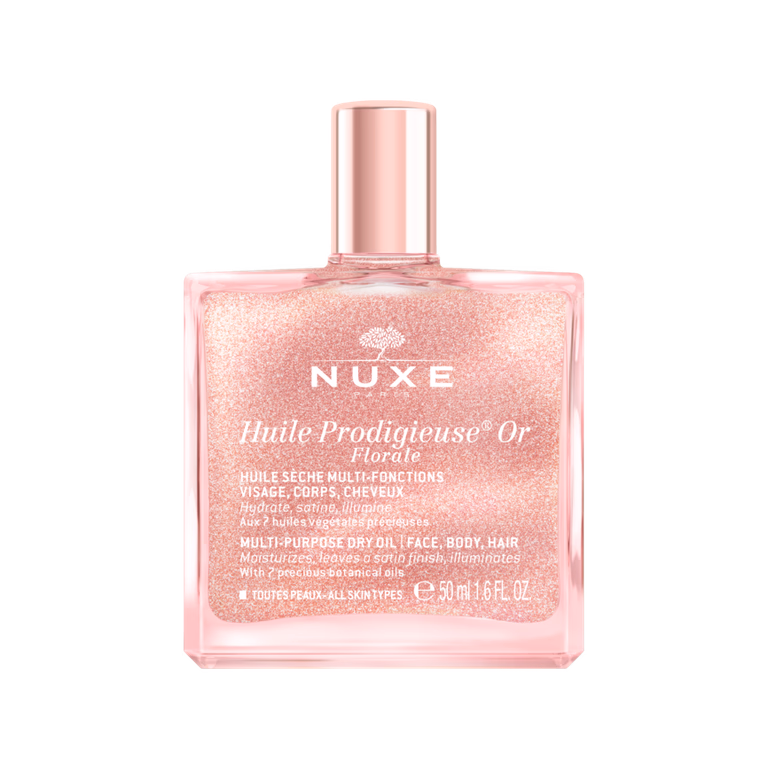 Gi hud og hår en uimotståelig glød! Nuxe Huile Prodigieuse OR Florale er en luksuriøs tørrolje med rosegull-skimmer og en frisk duft. Perfekt som highlighter