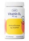 Styrk immunforsvaret med Nytti Vitamin D3 40 µg. Høydose D-vitamin for skjelett, tenner og muskler. Egnet for vegetarianere. Perfekt i mørketiden.