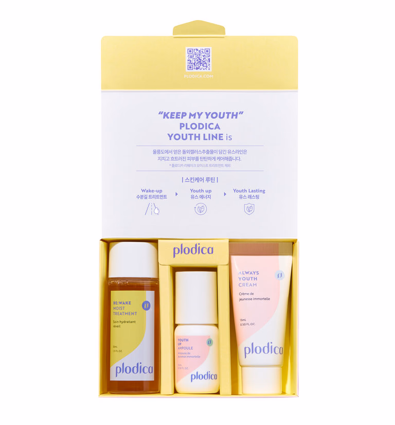 Hold huden duggfrisk og balansert på reise! Dette reisevennlige settet fra Plodica inneholder toner, ampoule og krem i praktiske størrelser som er perfekte for håndbagasjen