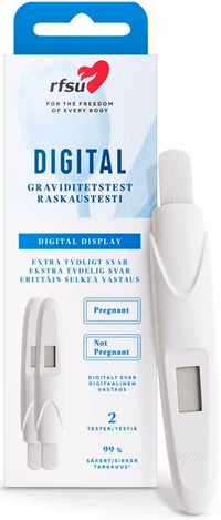 Få et utvetydig svar med RFSU Digital Graviditetstest. Viser «Gravid» eller «Ikke gravid» i displayet. 99 % sikker og duo-pakke med 2 tester.